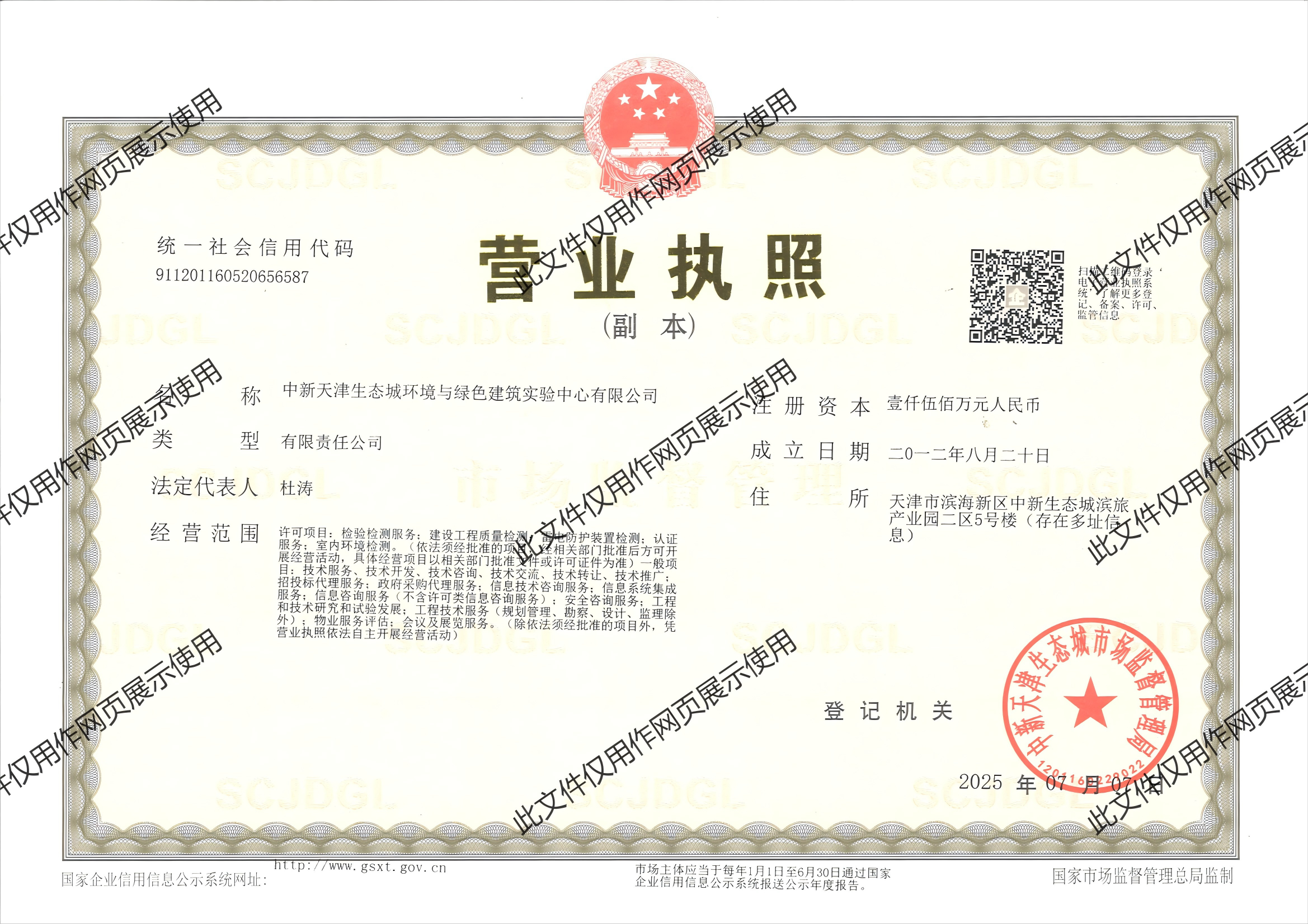 中新天津生態(tài)城環(huán)境與綠色建筑實驗中心有限公司是天津生態(tài)城綠色建筑研究院有限公司與天津住宅科學(xué)研究院有限公司共同出資組建,注冊資金為1500萬元。