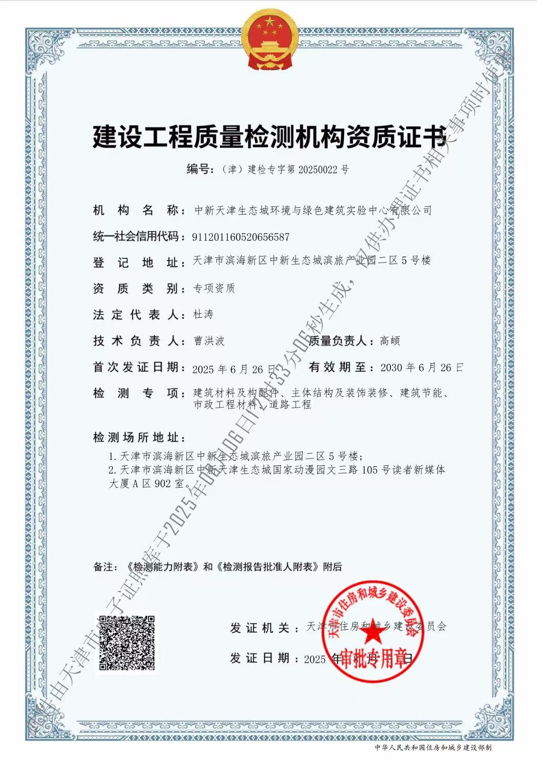 公司發(fā)展至今,技術(shù)能力不斷拓展和提升。現(xiàn)已具備檢驗檢測機構(gòu)資質(zhì)(簡稱CMA)、天津市建設(shè)工程質(zhì)量檢測機構(gòu)資質(zhì)、中國合格評定國家認(rèn)可委員會實驗室認(rèn)可資質(zhì)(簡稱CNAS)等資質(zhì)。同時,公司已被認(rèn)定為高新技術(shù)企業(yè)、天津市專精特新中小企業(yè)、濱海新區(qū)首家近零能耗建筑第三方測評機構(gòu)。公司主要從事建筑材料及構(gòu)配件、主體結(jié)構(gòu)及裝飾裝修、建筑節(jié)能、道路工程等檢驗檢測服務(wù),以及綠色建筑節(jié)能評估、近零能耗、房屋質(zhì)量安全鑒定等咨詢服務(wù)業(yè)務(wù)。公司在冊員工為60人,其中高級職稱30名,中級職稱20名,初級職稱10名。